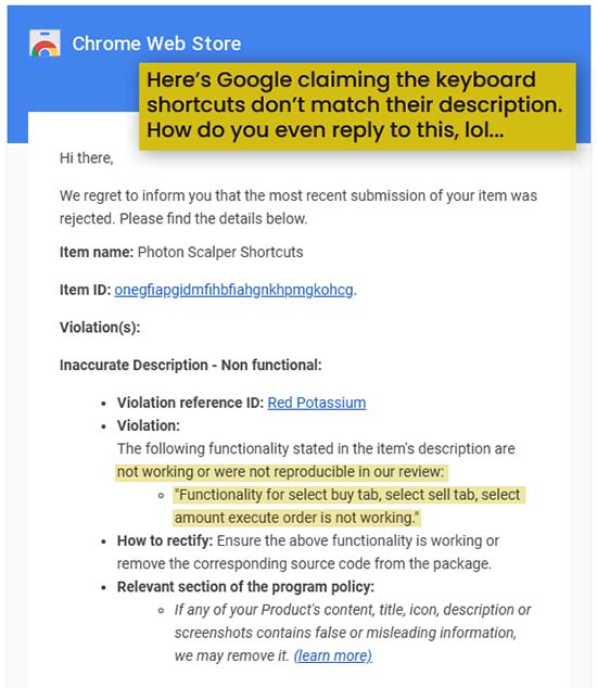 Every update becomes a lottery where Google might approve it quickly or reject it days later for arbitrary reasons, even if nothing major was changed. I focus on improving my extensions, not wasting time deciphering Googleβs inconsistent rules. The local ZIP versions are always up to date, but if you only install from CWS, check if it has the latest version, or don't use my extensions. Here is just a taste of what I have to deal with.