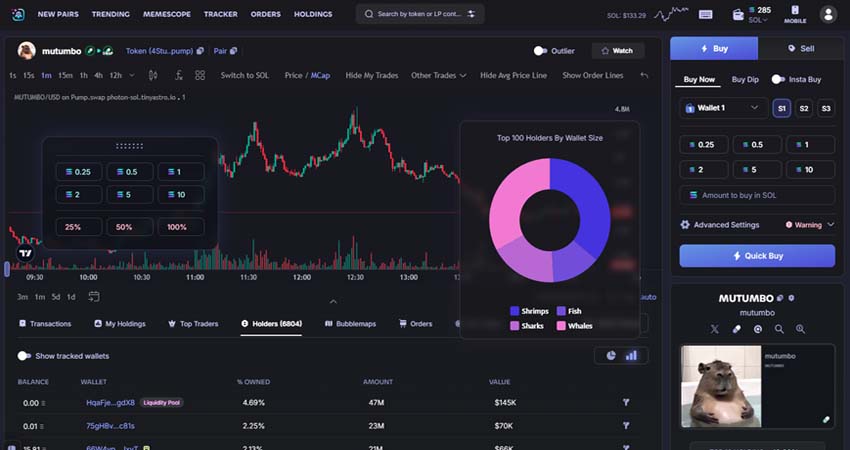 Photon is a web-based trading platform tailored for the Solana ecosystem. It offers: