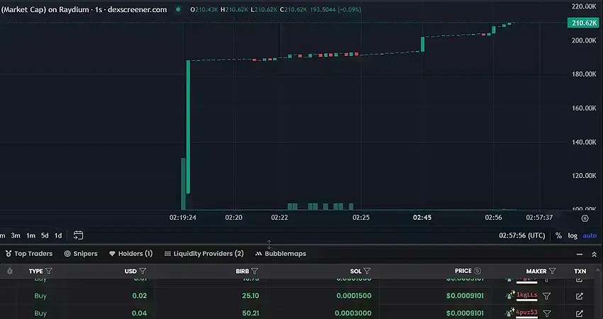 Once it goes live on Raydium, signal bots and alpha groups see the token and start hyping it up.